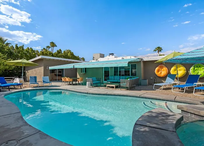 Azul Oasis By Avantstay Pool Hot Tub Bocce Ball Minutes From Downtown Palm Springs villa offers proximity to nearby tourist spots, such as the bustling Spa Resort and Casino, situated nearly 25 minutes' walk away.